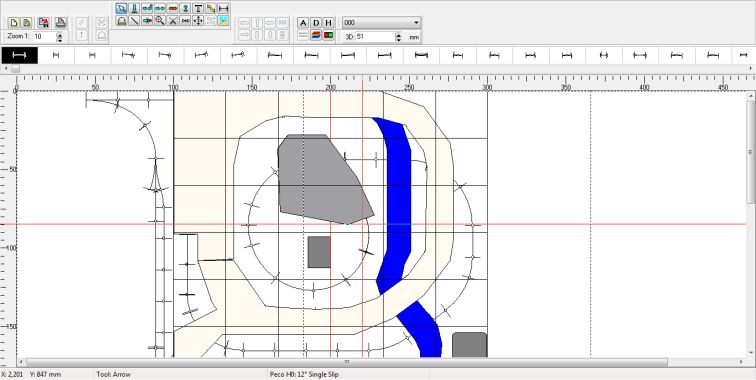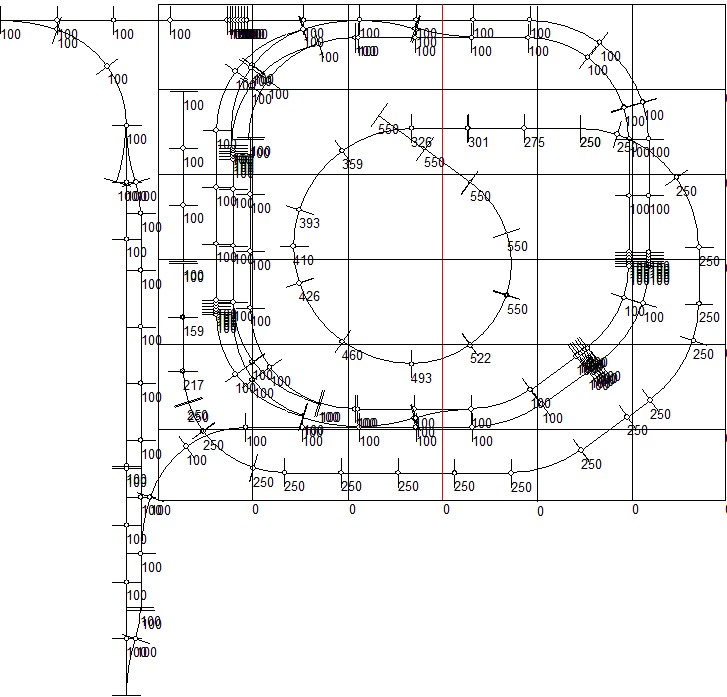 Professional Layout Services use the CAD program WinRail to design the vast majority of model railways we construct. We use WinRail to design the track plan, baseboards and also the scenery if required. We do not produce highly detail scenic drawings as these are very time consuming and as, the drawings are for our own use we simply add respective heights to the track, define areas that are of the same height and add scenic node points to give us the baseboard shapes when constructing. Examples of screen shots can be seen below after the track diagrams with and without heights shown. Diagram 1 - The left image shows the track plan, and to the right the track plan with track heights added.